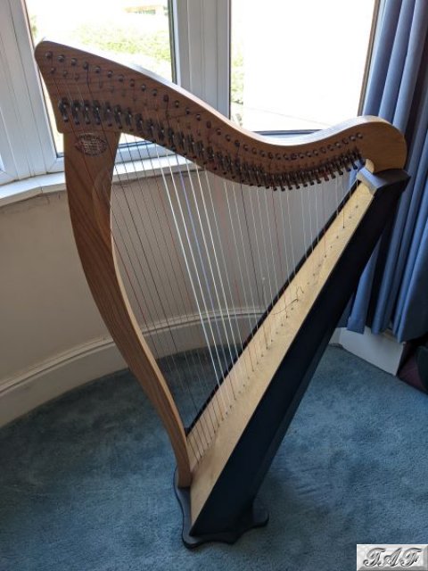 This 34 string clarsach folk harp made by Dusty Strings was used by my mother for events and and functions, it's reasonably light for it's size and in good condition with no bumps or scratches. The harp is missing two strings and all levers are intact and functional - it does need tuning.