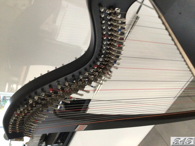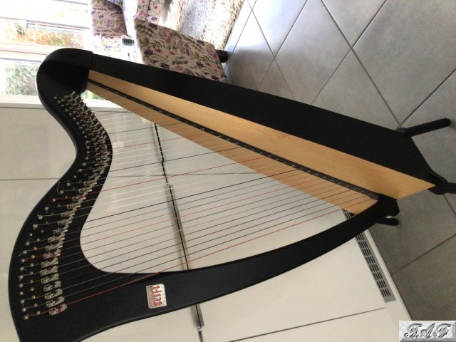 This Robyn student harp was purchased by us direct from the manufacturer in 2012 and is in excellent general condition, having been owned and played exclusively by our daughter. It is finished in Matt black with an ash soundboard and has no marks or damage to the woodwork. It plays well and produces an excellent sound. It comes with detachable legs, a padded carrying case, tuning key and tuning device. It is available to view and may be played by anyone who would like to test the quality. Unfortunately there is nobody here currently who can play the instrument to demonstrate its lovely sound qualities.
